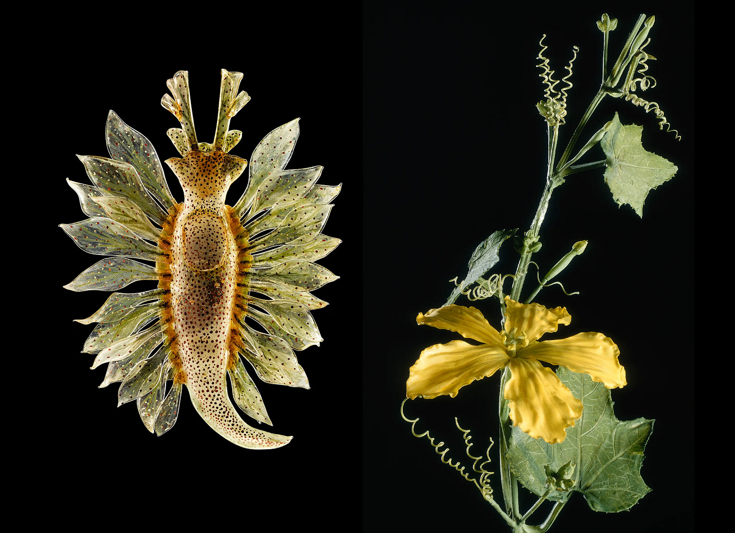Решение этой проблемы нашли мастера-стеклодувы из Богемии. Леопольд Блашка и его сын Рудольф с 1863 по 1936 год создали для разных музеев естественной истории тысячи стеклянных копий морских существ, и еще больше четырех тысяч ботанических моделей по заказу Гарварда. Это были и сами цветы, и семена, и стадии роста. Стеклянный сад Блашка подарил студентам то, чего не могли дать плоские иссохшие гербарии, — вечную весну.