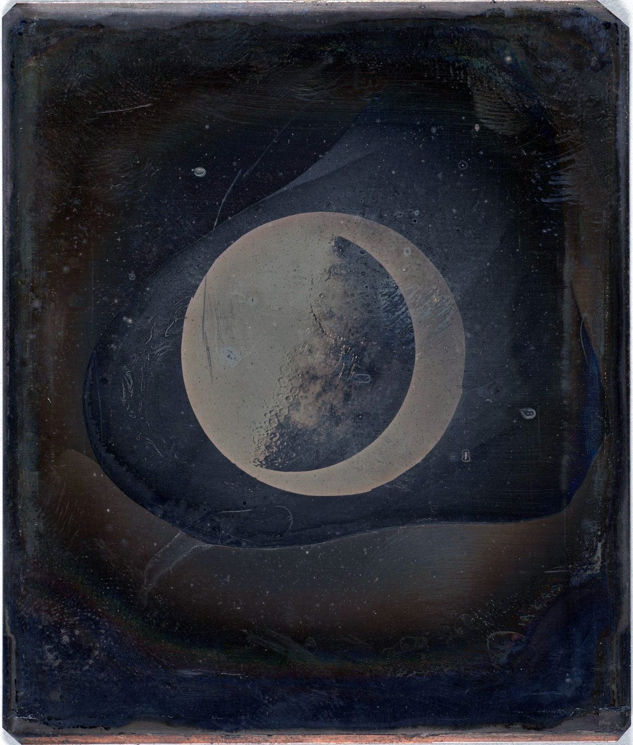 1840 год. Джон Уильям Дрейпер устанавливает на крыше Нью-Йоркского университета дагеротипный аппарат и двадцать минут держит затвор открытым, направив объектив на Луну. В результате получается мутный силуэт с едва различимыми кратерами. По современным меркам — брак, но научное сообщество было в восторге, потому что это пятно нарисовал не человек, а сам свет.