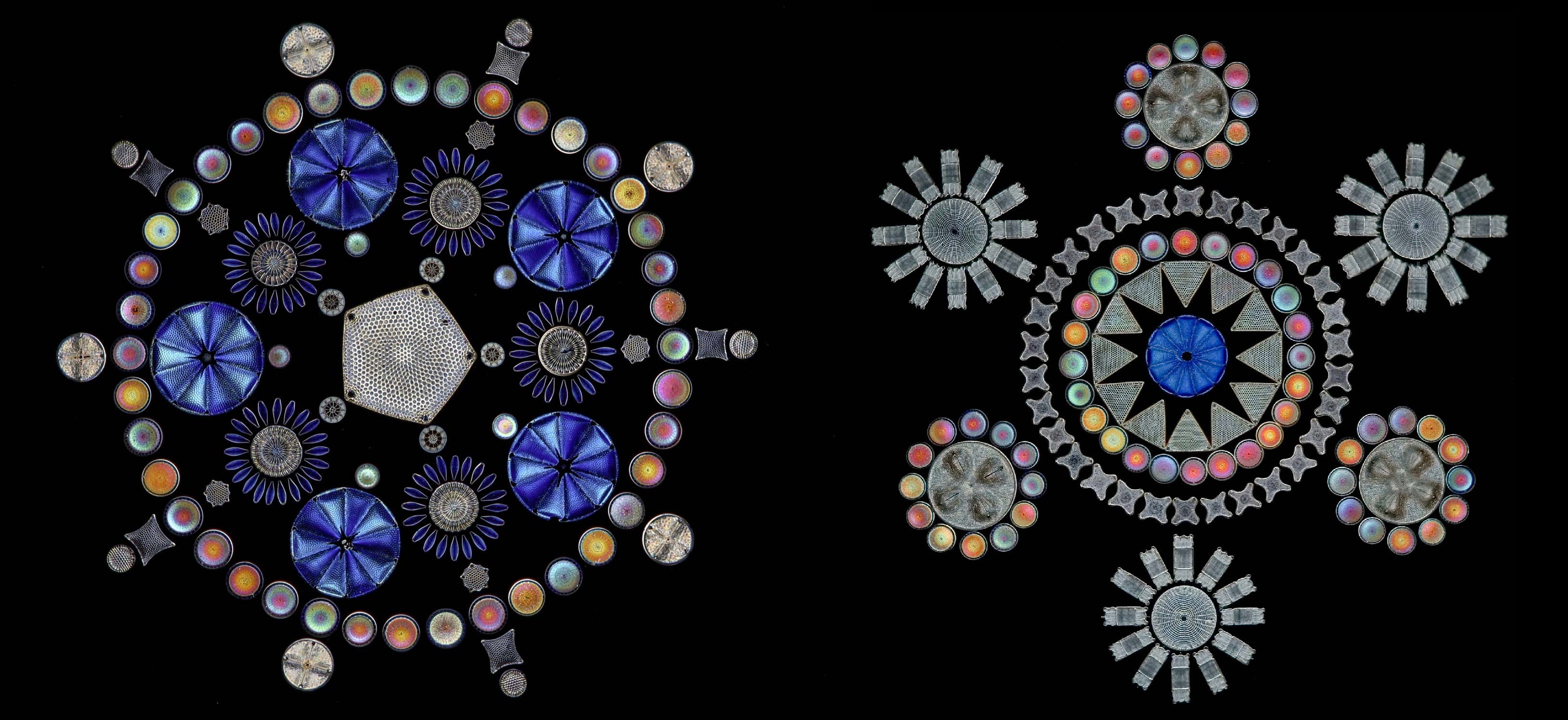 С изобретением микроскопов натуралисты открыли геометрию диатомей — одноклеточных организмов с кремниевыми панцирями, чья форма кажется почти архитектурной. Микроскописты вроде Иоганна Меллера настраивали с их помощью оптику, и ненароком изобрели искусство микромозаики, а Эрнст Геккель в атласе Kunstformen der Natur сделал эстетизацию природных структур самостоятельным визуальным языком, оказавшим сильное влияние на архитекторов модерна.
