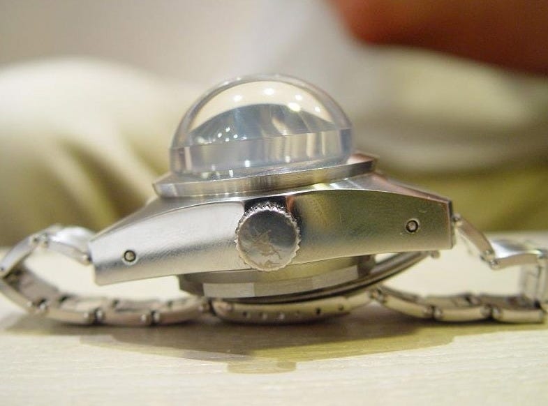 Большинство дайверских часов в то время ограничивались прочным корпусом и толстыми стеклами, пускай и не такими внушительными, как у Rolex Deep Sea Special, но уже начали появляться механические глубиномеры для аквалангистов, где капсула с чувствительным элементом была заполнена жидким глицерином. Это делалось не только для демпфирования, но и для того, чтобы при быстром перепаде давлений прибор не «отставал».