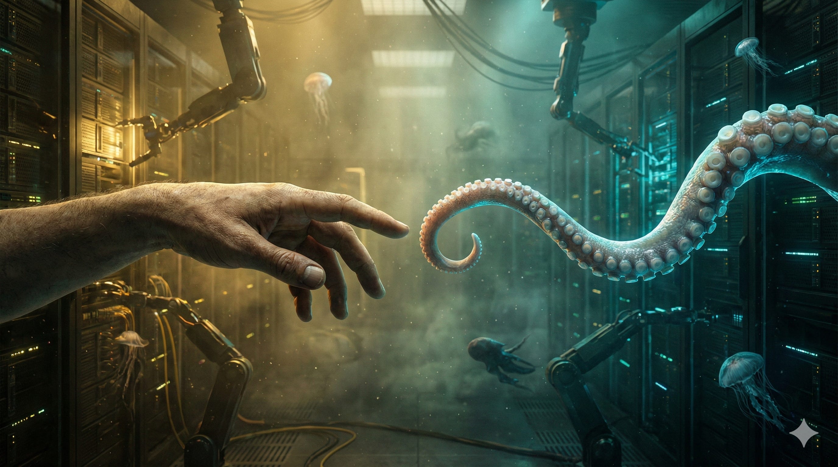 Мы ищем иной разум в космосе, а он уже здесь — в океане и в наших серверах. Почему корпорации похожи на осьминогов, зачем учить моллюска игре на пианино и почему Новый год — это просто ошибка